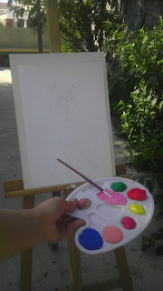 2º Una vez finalizado el dibujo, sentamos a cada niños/as enfrente de su caballete y le damos una paleta con una gama de colores.